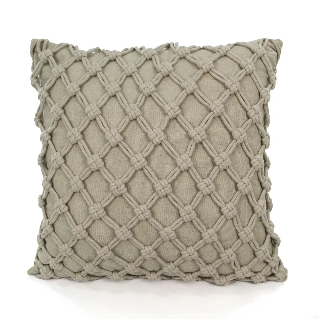 Almofada decorativa em tecido texturizado com detalhes trançados e fios em relevo, que trazem charme...