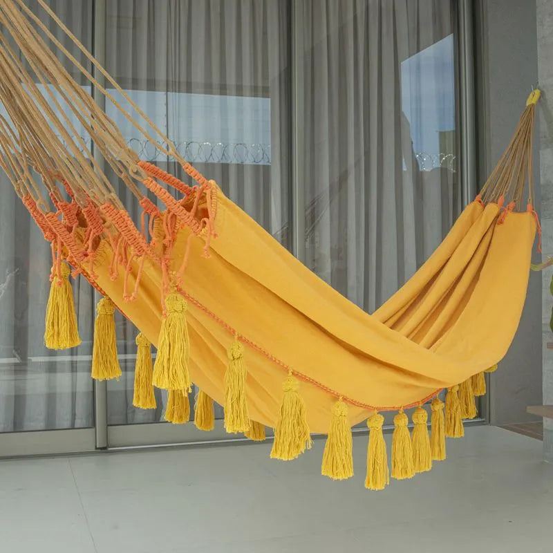 Franjas especiais na varanda! A Rede King Franja conta com uma varanda curta com franjas...