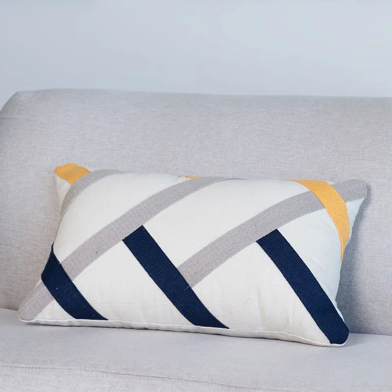 Com design contemporâneo e cores elegantes, esta almofada retangular combina tons neutros com faixas diagonais...