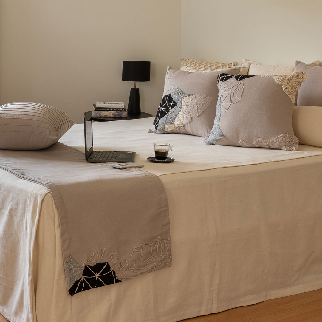 INFORMAÇÕES ESSENCIAIS Esse conjunto une a elegância do xale com a delicadeza de combinar almofadas,...