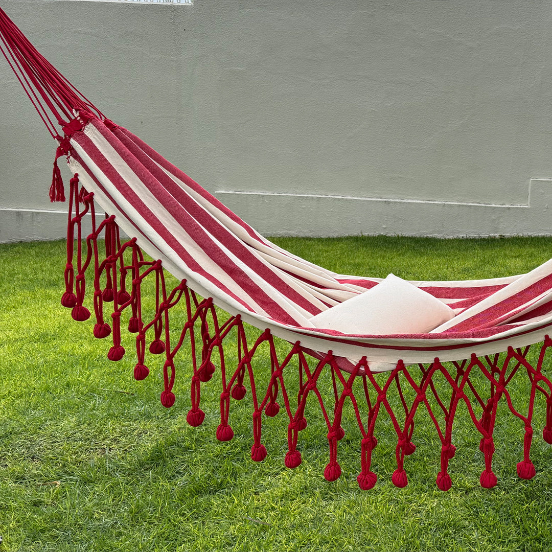 A tradicional rede na varanda, com aquele xadrez de neutras e alegres. A Rede Caponga...