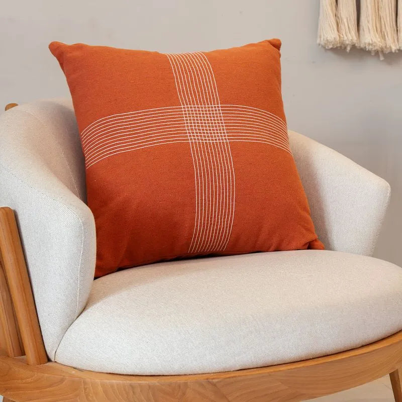 Com um toque contemporâneo e elegante, a capa de almofada Dallas Cruzada combina fundo terracota intenso com linhas finas em tom terroso, formando um padrão xadrez moderno e versátil. Ideal para trazer contraste e sofisticação à sua decoração, seja em sofás, poltronas ou camas.