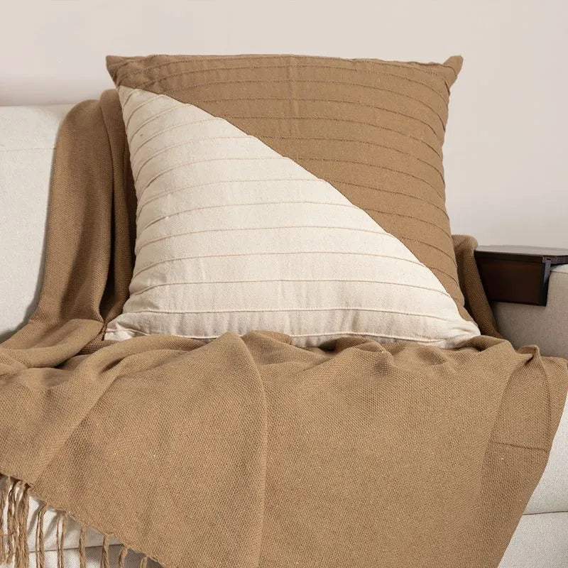 Com design moderno e elegante, a almofada traz um jogo de cores neutras em caramelo e cru, destacadas pelo detalhe de drapeado em linhas horizontais que garantem textura e sofisticação. Seu estilo versátil combina perfeitamente com diferentes propostas de decoração, trazendo aconchego e um toque contemporâneo para sofás, poltronas ou camas.