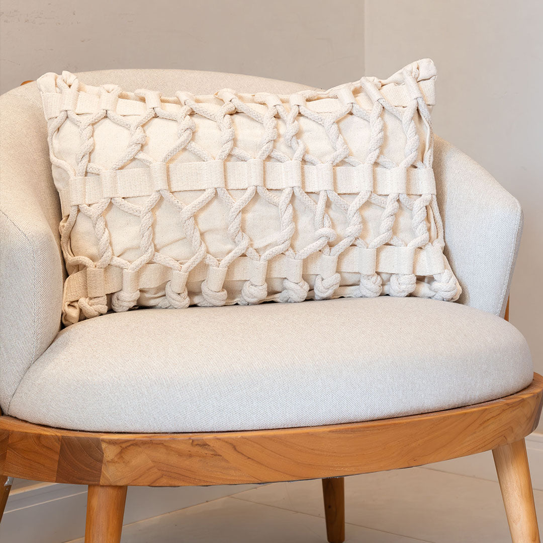 A Capa de Almofada Fiarte é a escolha ideal para quem ama uma decoração com textura, charme e um toque artesanal. Seu design diferenciado, com tramas em cordão e acabamento em nós, cria um efeito visual sofisticado e aconchegante, valorizando qualquer ambiente.