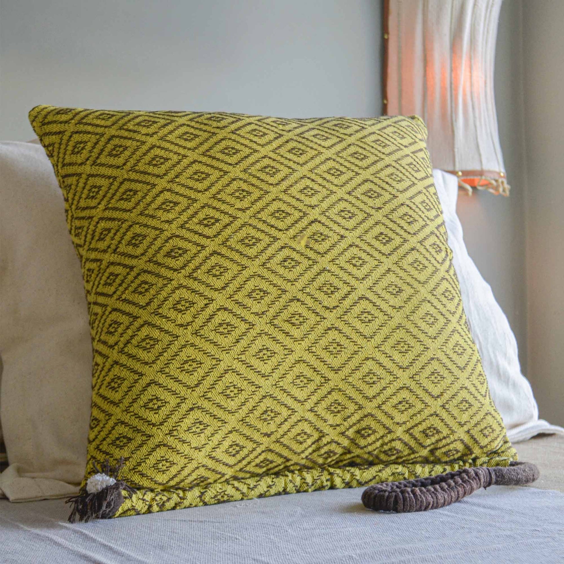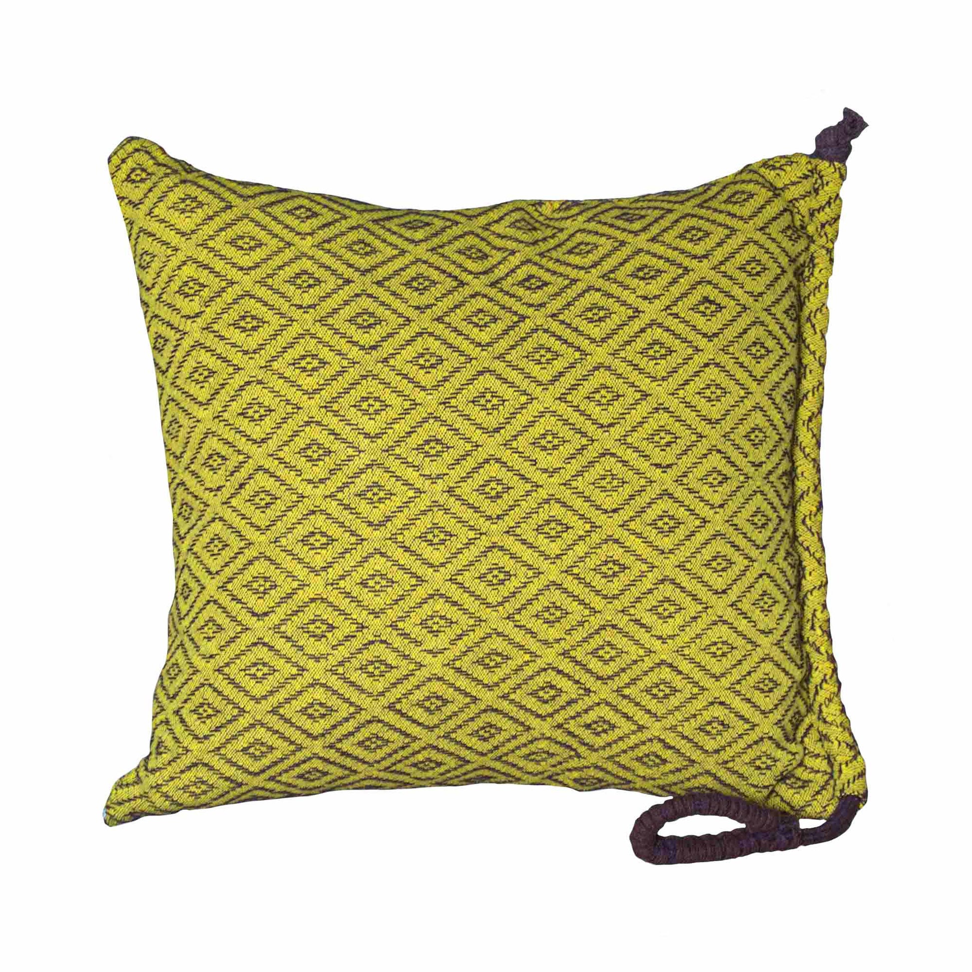 A capa de almofada girassol é produzida a partir do processo de reciclagem, tornando-a ecologicamente correta. O algodão é desfibrado das sobras de retalhos da indústria de confecções e aproveitado na produção de novos fios, que são fiados novamente com garrafas PET para ganhar resistência. A cada metro de tecido produzido, são retirados do meio ambiente 4 garrafas PET e 480g de resíduos têxteis. O processo dispensa tingimentos e a economia de água é aproximadamente 80%, além da economia de energia elétrica e CO2 na produção do algodão reciclado, que é de 76% e 71%, respectivamente. A capa de almofada é finalizada com nós feitos à mão pelos artesãos locais no Sertão da Paraíba.