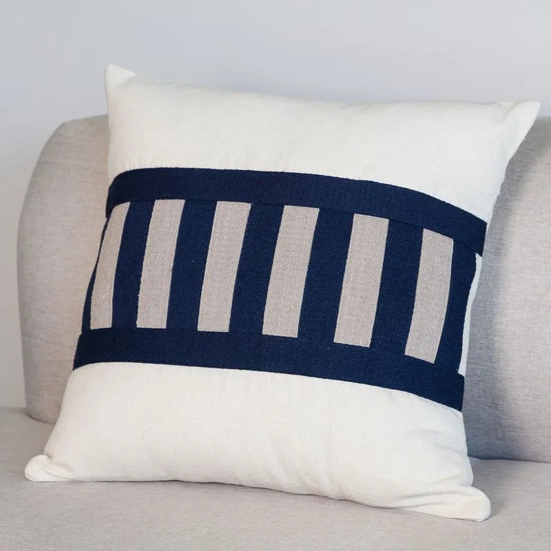 Estilo e conforto em um só item! A Capa de Almofada Linear traz um design moderno com listras geométricas em azul-marinho e fundo cru, perfeita para compor ambientes sofisticados ou descontraídos. Confeccionada em tecido resistente e macio, é ideal para renovar a decoração da sala, varanda ou quarto com um toque elegante e atemporal.