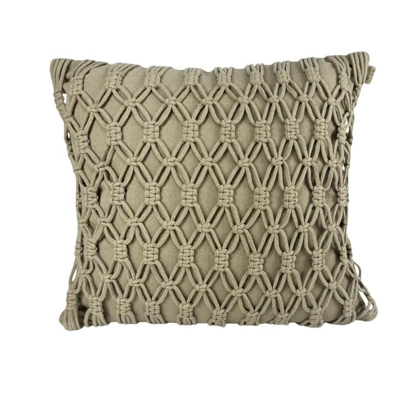 Esta peça se destaca pelo seu design artesanal com macramê em padrão colmeia, que confere um visual elegante e aconchegante ao ambiente. Feita com materiais de alta qualidade, é ideal para compor sofás, poltronas ou camas, trazendo um toque boho chic e sofisticado à sua casa.