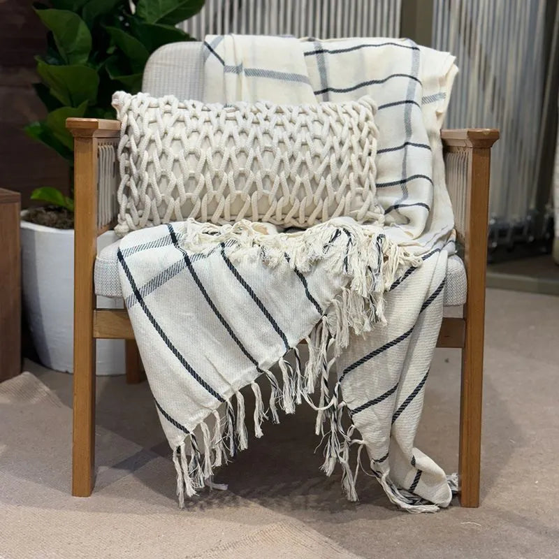 Esse conjunto une a elegância da manta com a delicadeza das almofadas retangulares, criando uma atmosfera acolhedora em qualquer canto da casa. Design consciente, conforto com história.