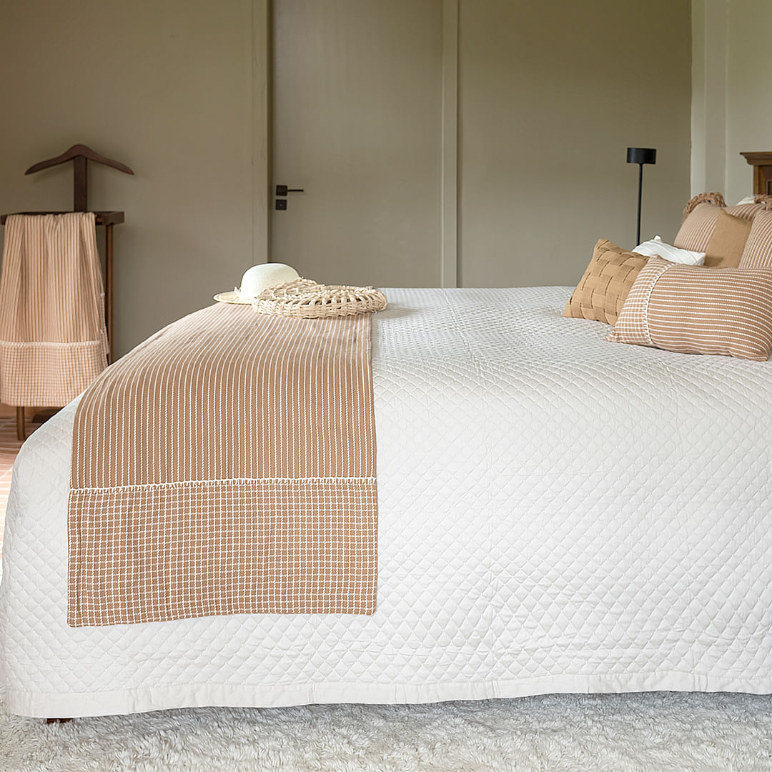 Com uma textura que evoca o refinamento, a Peseira Risca de Giz é o exemplo perfeito de como simplicidade e sofisticação podem caminhar juntas. O design minimalista, combinado com a excelência artesanal, faz desta peça um elemento chave para transformar seu quarto em um ambiente de luxo discreto.
