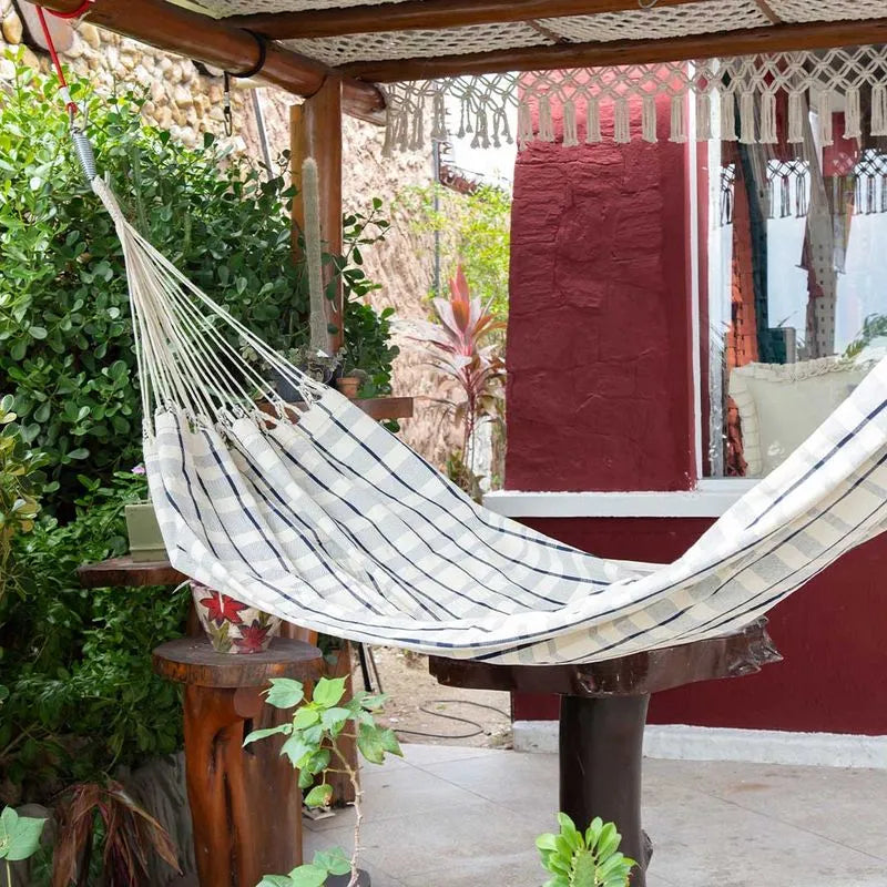 Inspirada na suavidade da brisa, esta rede traz um design clássico com listras em tons claros que combinam facilmente com qualquer ambiente. Feita em algodão de alta qualidade, oferece maciez e resistência, ideal para momentos de descanso ao ar livre ou dentro de casa.