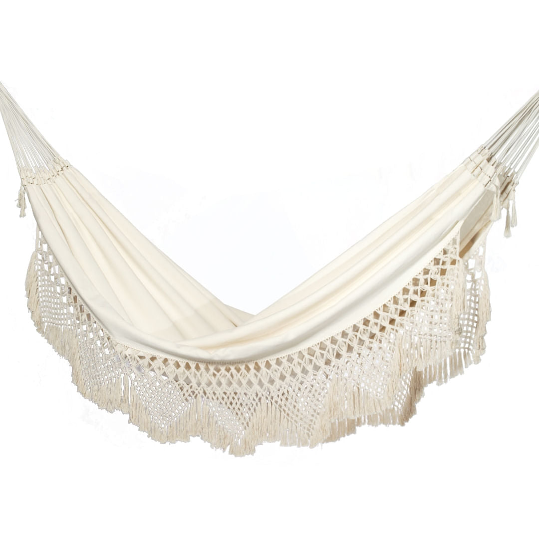 Disponível em diversas cores para melhor alinhar com a decoração da sua casa, a Rede Xingu é queridinha dos nossos clientes. Com um tecido ecológico na cor verde musgo e uma varanda 100% artesanal feita com um macramê característico das redes de balanço, tem todos os detalhes que a sua decoração merece. Os punhos, caréus e mamucabas também são feitos à mão.
