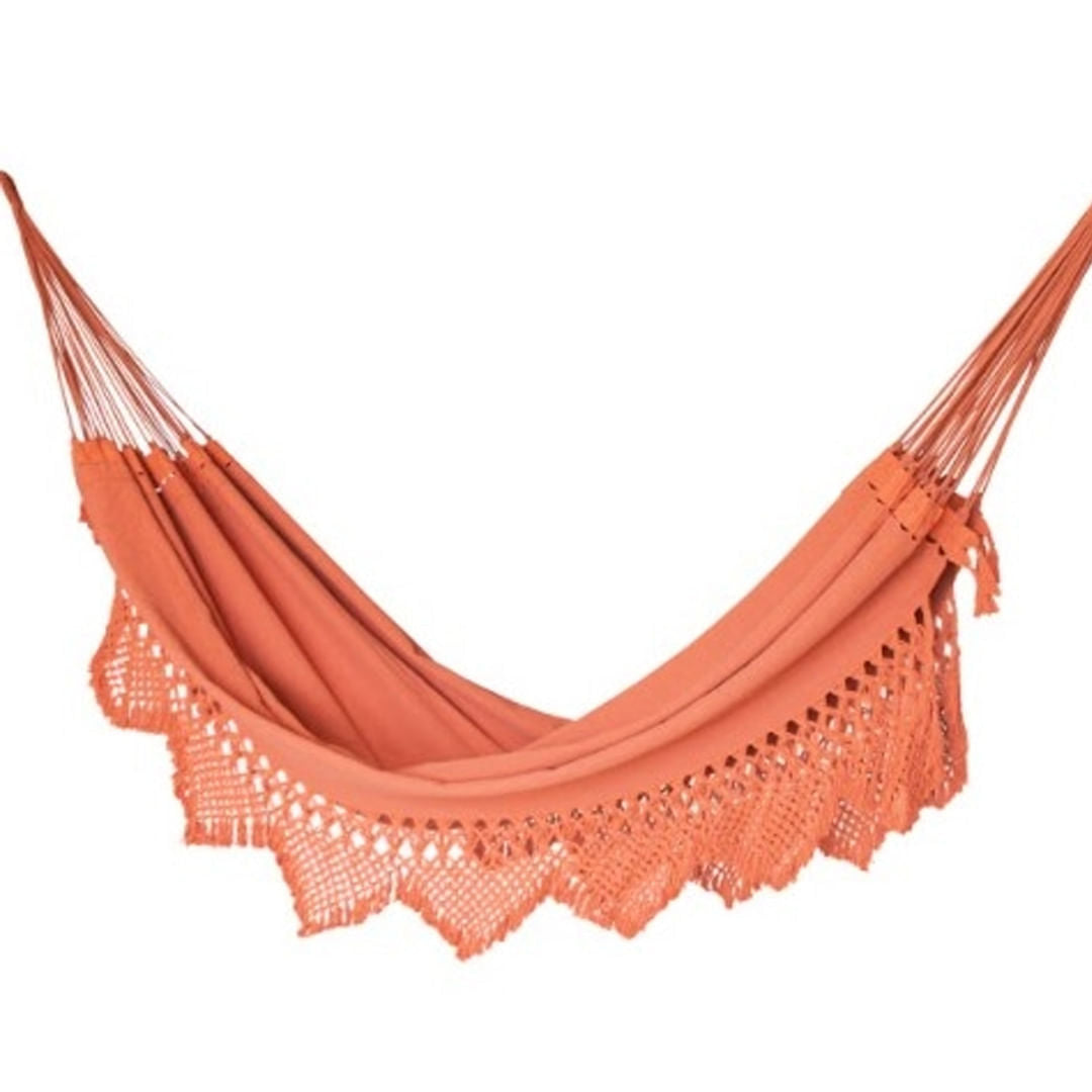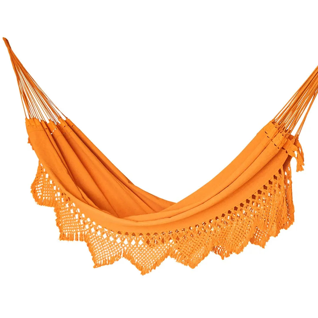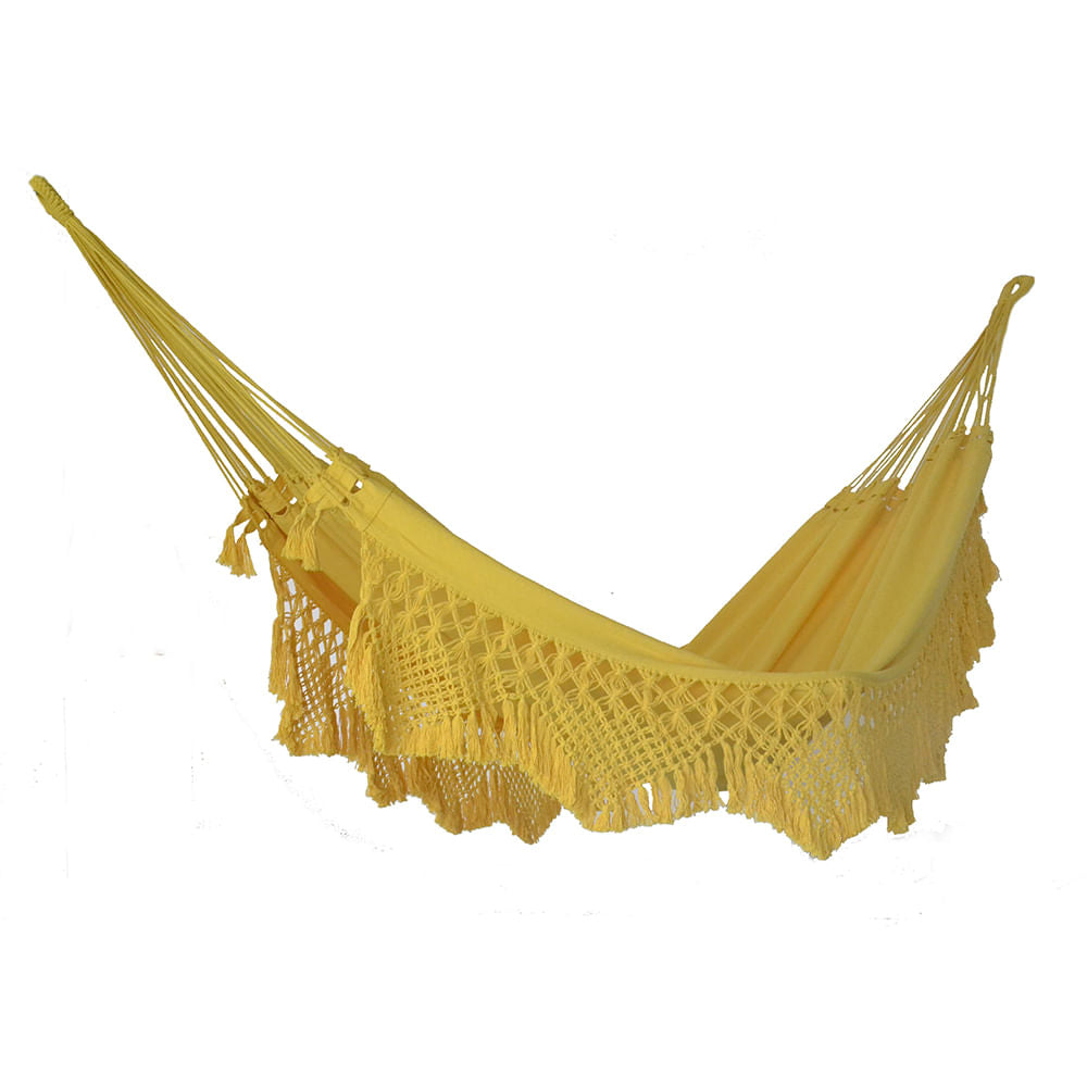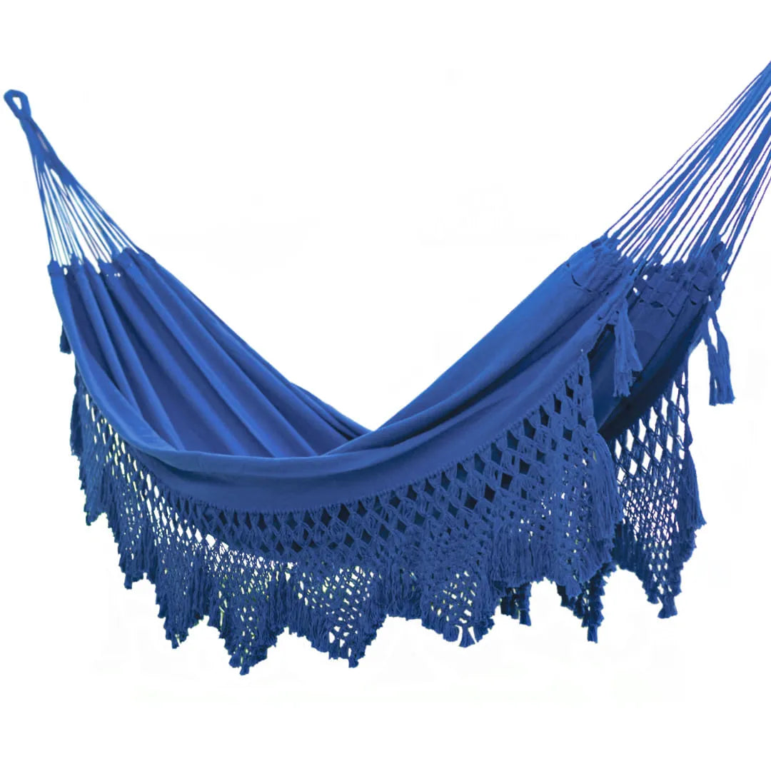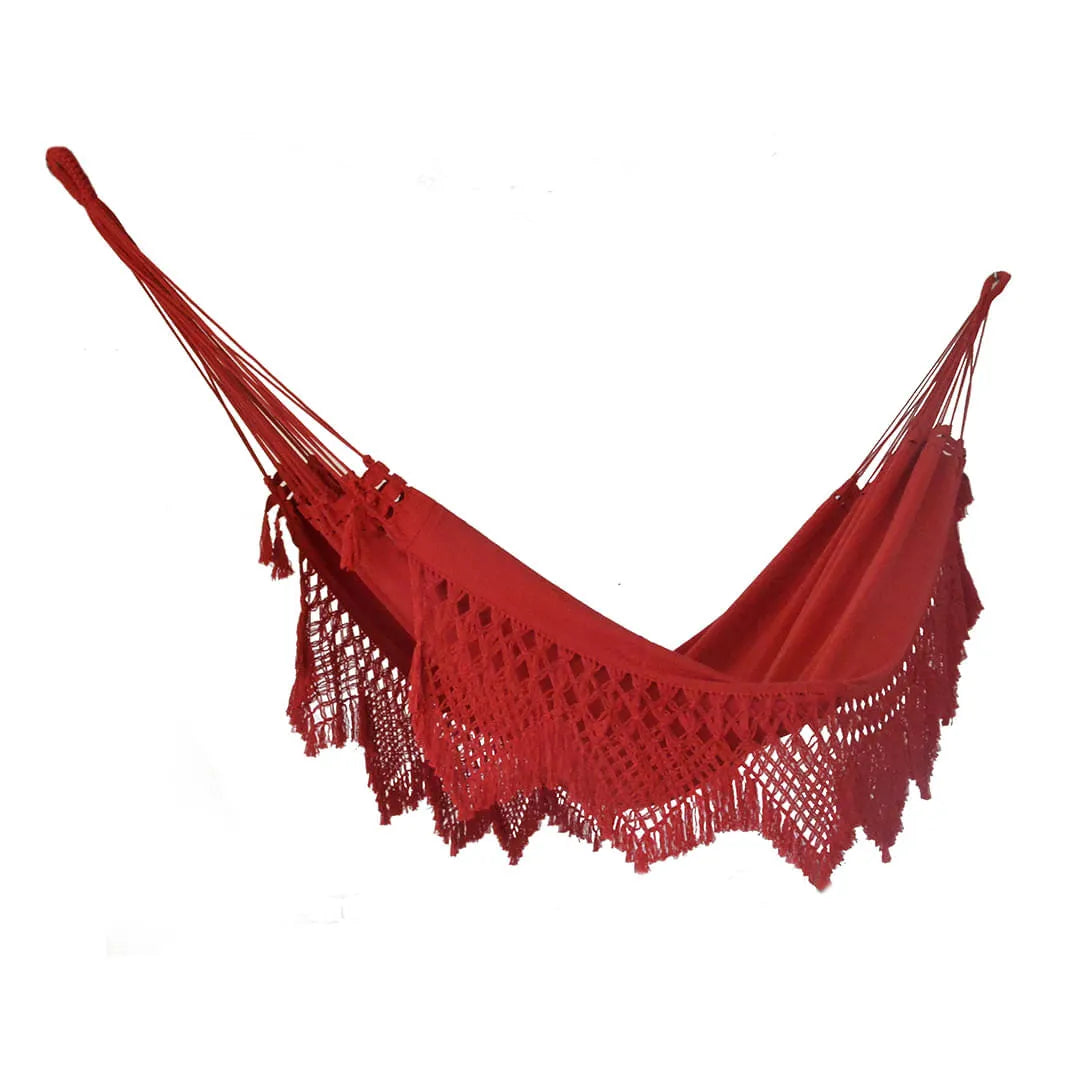 Disponível em diversas cores para melhor alinhar com a decoração da sua casa, a Rede Xingu é queridinha dos nossos clientes. Com um tecido ecológico na cor verde musgo e uma varanda 100% artesanal feita com um macramê característico das redes de balanço, tem todos os detalhes que a sua decoração merece. Os punhos, caréus e mamucabas também são feitos à mão.