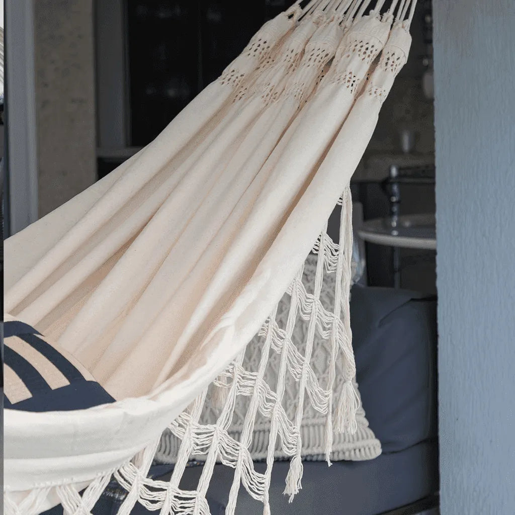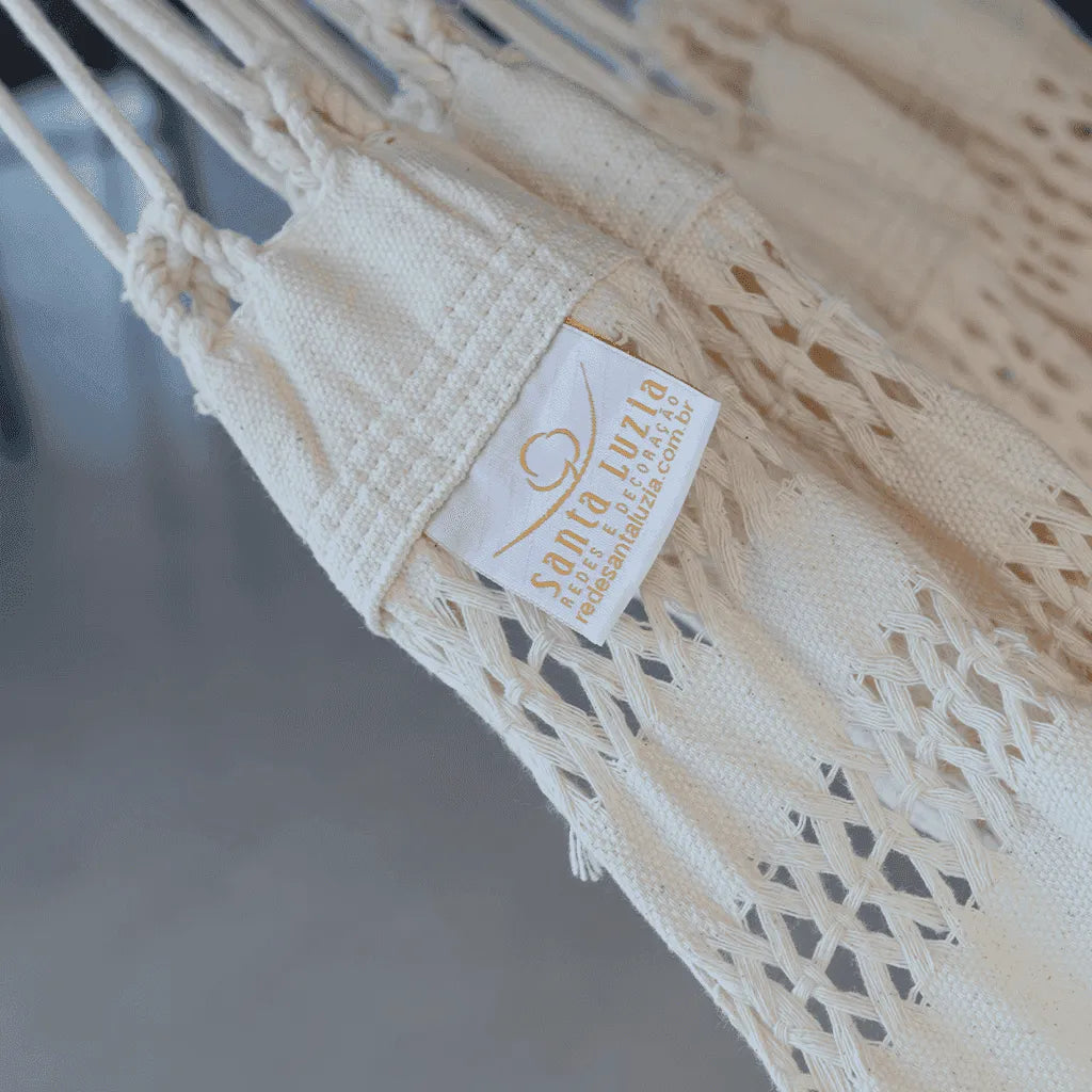 - Para redes em algodão cru (bege claro), faça um ciclo completo sem sabão e depois outro com sabão.