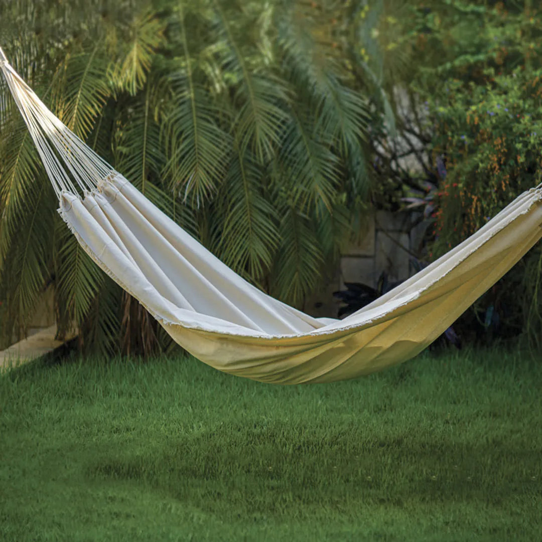 - Para redes em algodão cru (bege claro), faça um ciclo completo sem sabão e depois outro com sabão.