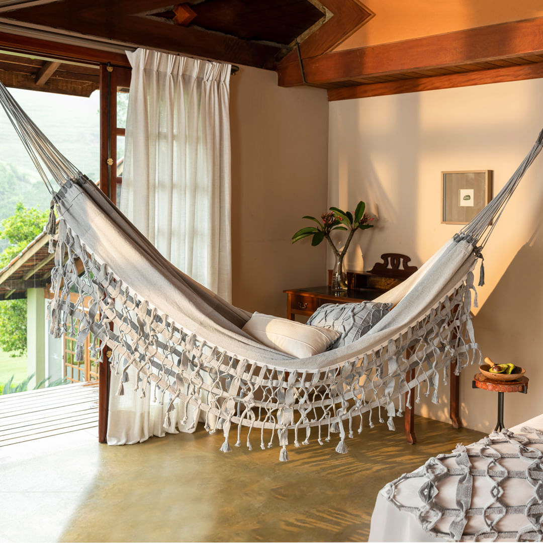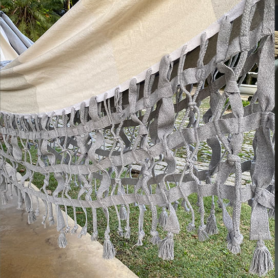 Produzida em tear manual, a Rede de Descanso Mangue é um verdadeiro tributo à natureza. Inspirada nos mangues litorâneos, essa peça carrega em suas tramas a representação das raízes que protegem a fauna e a flora marinha, além de serem fundamentais para a regulação do clima. Cada detalhe artesanal da varanda simula o movimento dessas raízes, trazendo à tona o equilíbrio e a força da natureza. Se você busca uma rede que combine beleza e significado, a Mangue é a escolha ideal. Feita com cuidado em cada ponto, ela oferece uma experiência de descanso conectada à natureza, onde o artesanato manual se encontra com a sustentabilidade.