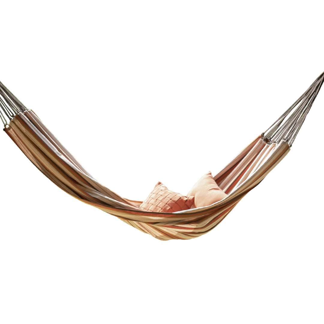 A rede de dormir Tambaú tem listras harmônicas, com cores vivas que se complementam. O tecido é feito a partir da reutilização dos retalhos da indústria com fios de garrafa PET. Uma rede usual e com muito estilo. Os punhos, caréus e mamucabas são feitos à mão.