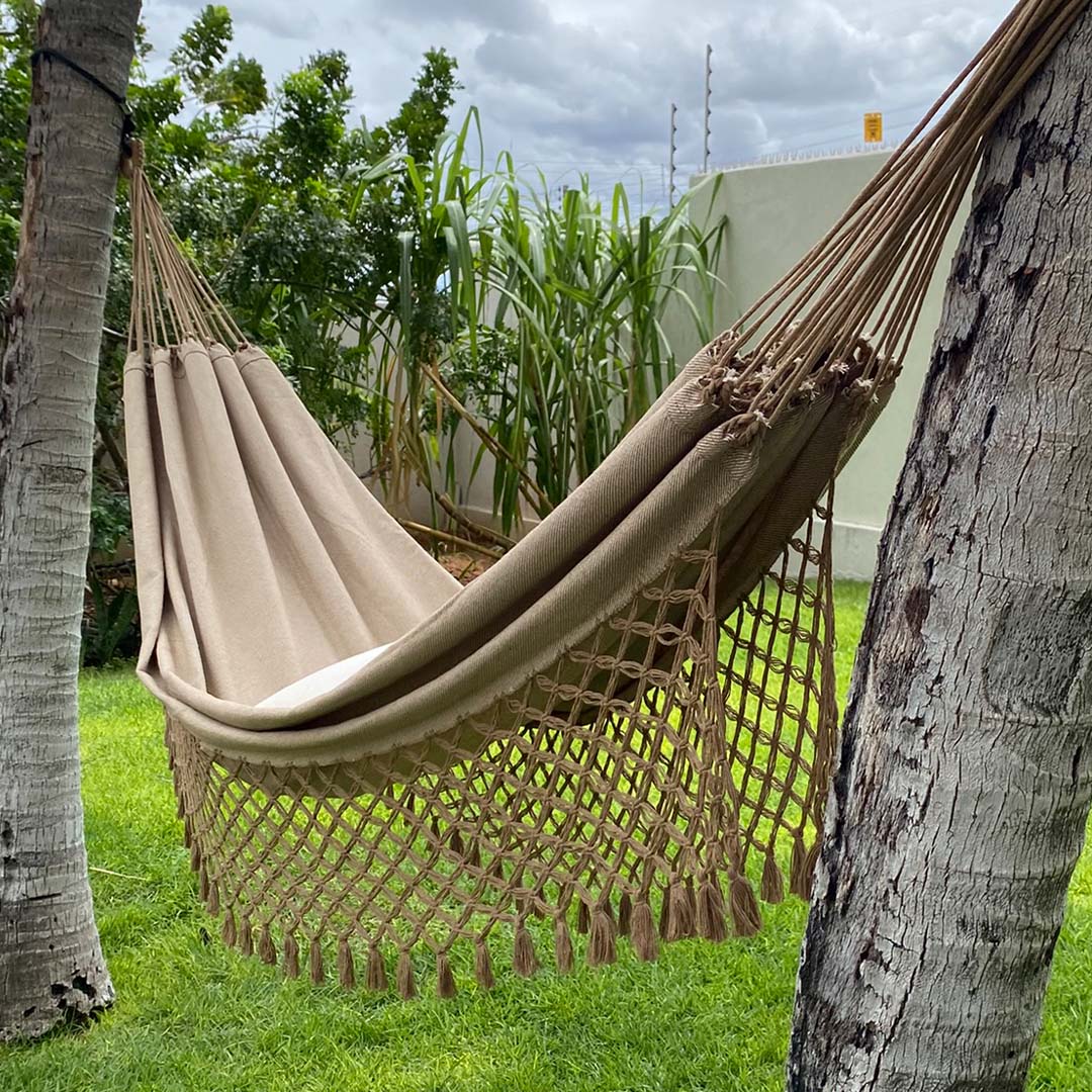 Aconchego e sofisticação em um tom neutro que combina com qualquer ambiente. Possui acabamento em macramê artesanal, que adiciona charme e delicadeza à peça. Ideal para transformar sua varanda, jardim ou sala em um espaço de relaxamento cheio de estilo.