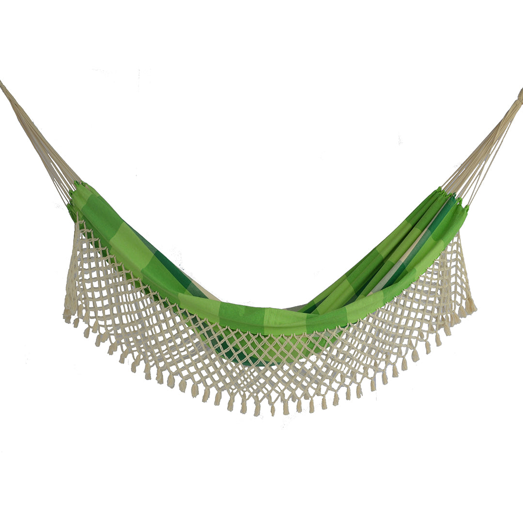 A Rede Tambaú é perfeita para quem ama descansar com estilo e transformar qualquer cantinho em um espaço mais leve e aconchegante. Com um visual marcante e acabamento artesanal, ela combina tecido encorpado, cores vivas e uma varanda rendada delicada, trazendo aquele toque de casa de praia, calma e bem-estar.