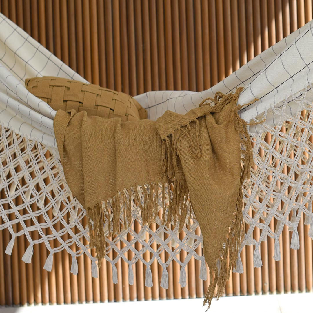 Uma boa opção para decorar, renovar ou proteger o visual do seu sofá, nosso Xale Manta Nó tem tecido reciclado plano e é finalizada com nós feitos à mão pelos artesãos locais no Sertão da Paraíba.