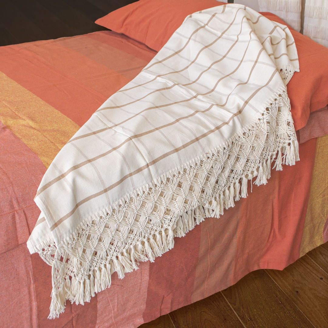 O Xadrez é um clássico na decoração! Nosso Xale Siri tem tecido leve, 100% algodão feitos em teares manuais. Seu acabamento também é feito artesanalmente na tipologia macramê.