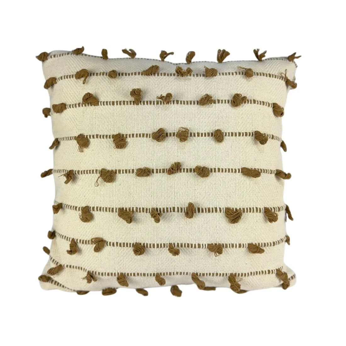 A almofada traz um design sofisticado e aconchegante, com detalhes em corda dispostos em linhas...