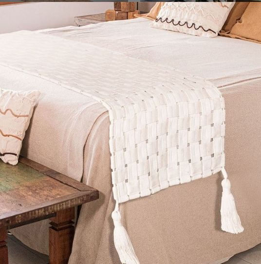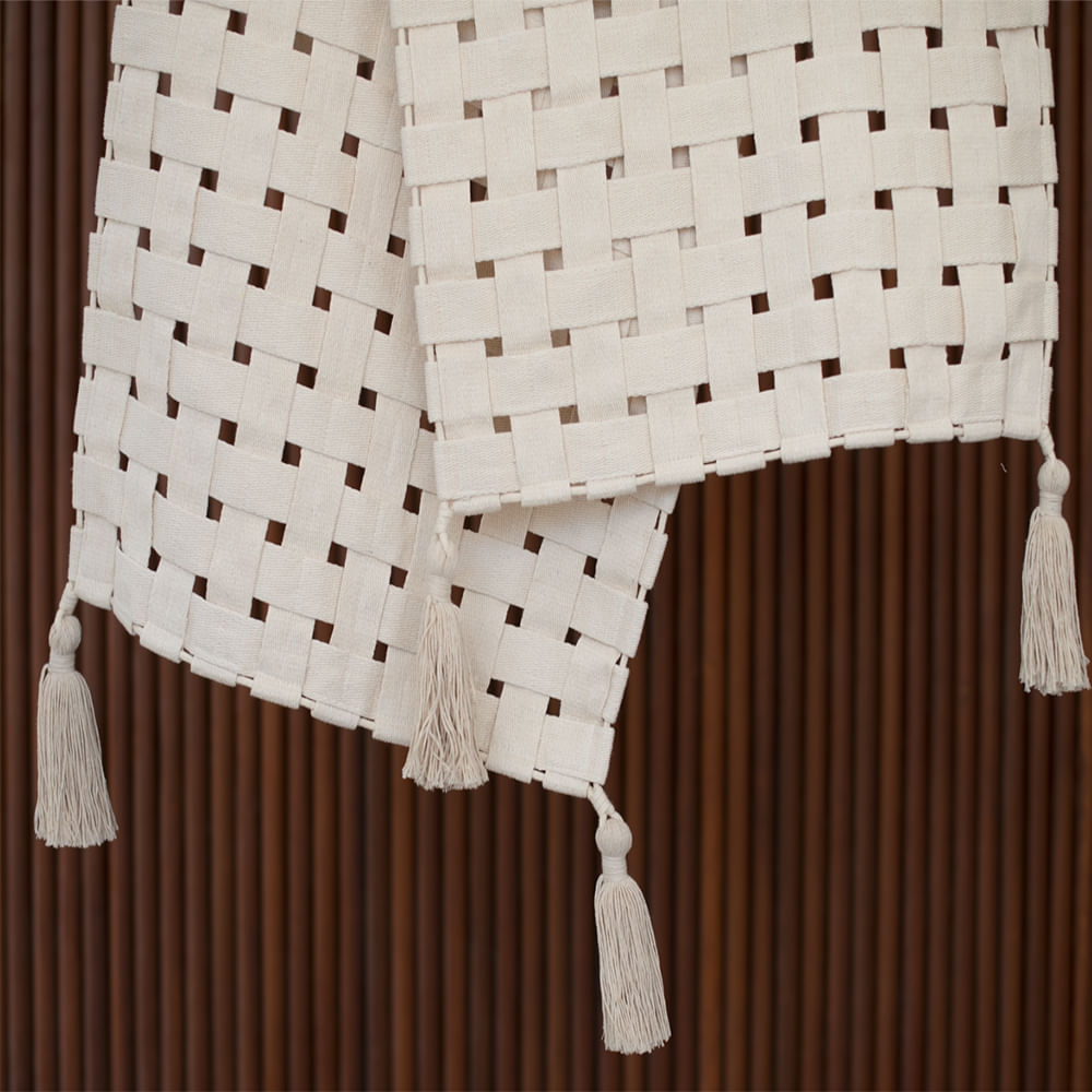 Criatividade na hora de decorar o seu quarto, você encontra na nossa peseira Trancê! As tiras de mamucabas (tiras que dão sustentação à rede) foram reinventadas em um trançado 100% artesanal. O tecido é 100% algodão e tem acabamento com tassels.